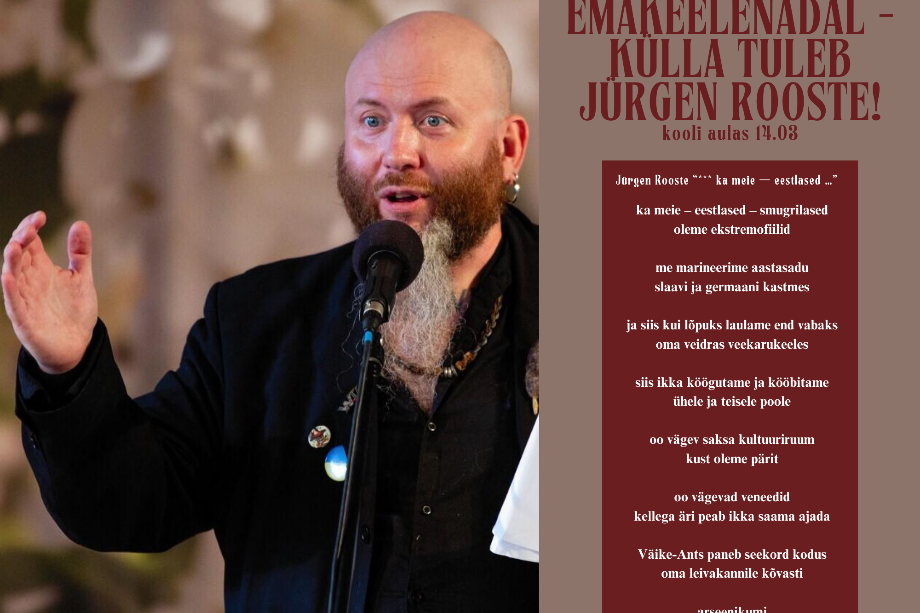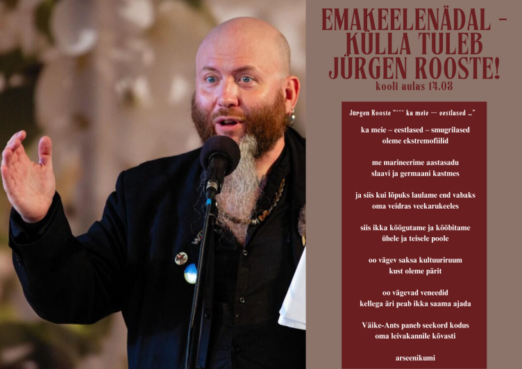 Aeg 10:00 - 11:00 Asukoht Vabaõhukooli aula Ava foto Vaata rohkem sündmusi Ava foto Avaldatud 13.02.2025. Viimati muudetud 13.02.2025.